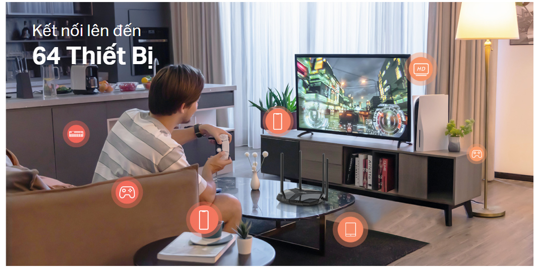 - Kết nối đồng thời – Truy cập và chia sẻ mạng Internet với tối đa 64 thiết bị Wi-Fi.