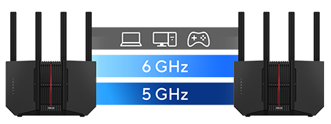 Công nghệ Multi-Link Operation (MLO) cho phép kết nối không bị gián đoạn bằng cách kết hợp và chuyển đổi thông minh giữa băng tần 2,4 Ghz, 5 GHz và 6 GHz. ASUS RT-BE92U được thiết kế cho tương lai của tất cả các thiết bị WiFi 7, bất kể chế độ MLO sử dụng*.