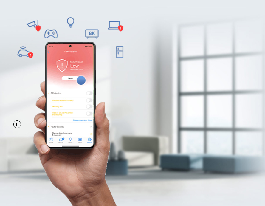 Trong một thế giới kết nối, mạng gia đình chính là cánh cổng dẫn đến cuộc sống số của bạn. Có được khả năng hiển thị và kiểm soát toàn diện mạng gia đình, chống lại các mối đe dọa mới nổi và đảm bảo bảo vệ liền mạch cho tất cả các thiết bị được kết nối và dữ liệu cá nhân của bạn. Tính năng Bảo mật mạng của ASUS mang đến sự an tâm với khả năng bảo vệ router, bảo vệ thiết bị và kết nối an toàn mạnh mẽ.