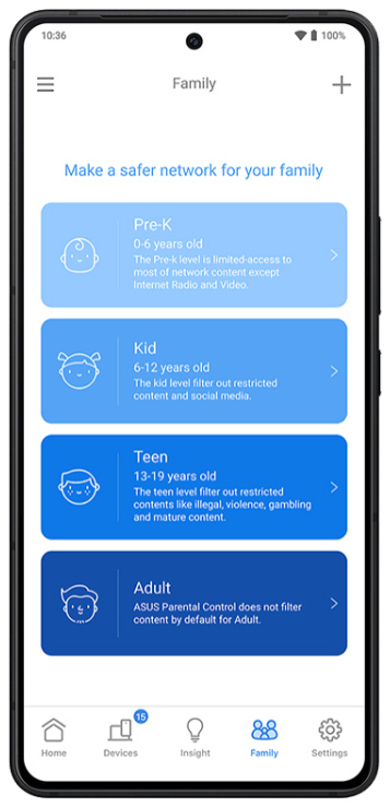 Hồ sơ được thiết lập sẵn sẽ tự động lọc nội dung không phù hợp và thiết lập lịch trình thời gian sử dụng màn hình, giúp bạn dễ dàng áp dụng cài đặt dựa trên độ tuổi của con.