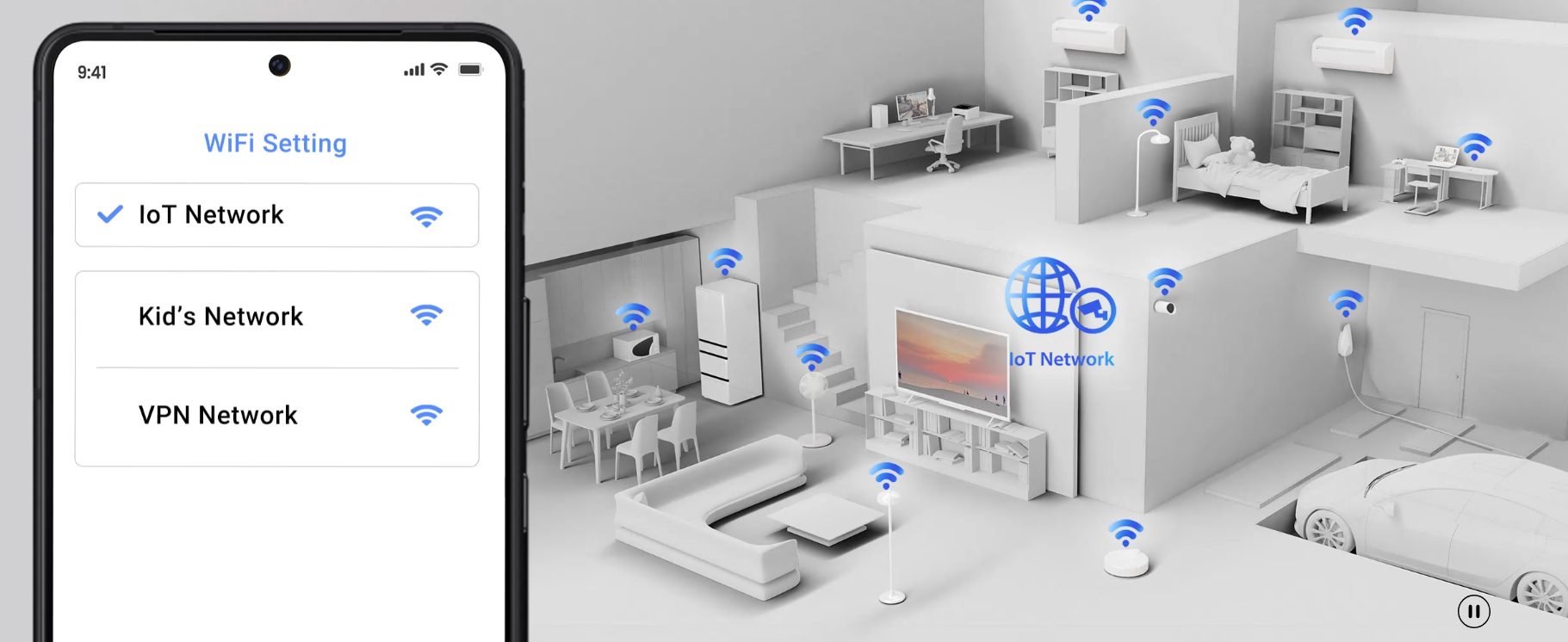 Thiết lập và quản lý tất cả các thiết bị IoT của bạn dưới một SSID bảo mật để tăng cường bảo mật với khả năng bảo vệ cấp độ thương mại.