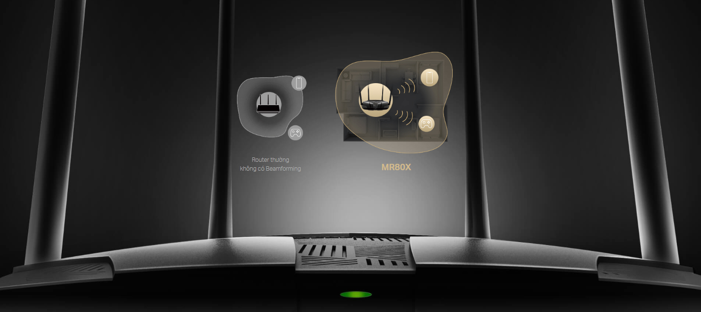 Kết nối thông minh cho phép mỗi băng tần không đây của MR80X sử dụng cùng cài đặt không dây. MR80X cân bằng nhu cầu mạng và gán thiết bị của bạn vào băng tần có tín hiệu và tốc độ tốt nhất. Điều này giúp thiết bị của bạn luôn hoạt động tối ưu khi bạn đi lại trong nhà.