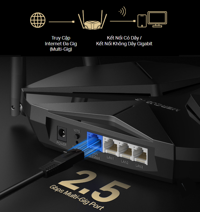 - CỔNG MULTI-GIG 2.5 Gbps – Phá vỡ nút thắt cổ chai 1G và đưa thiết bị của bạn đạt hiệu suất đỉnh cao.