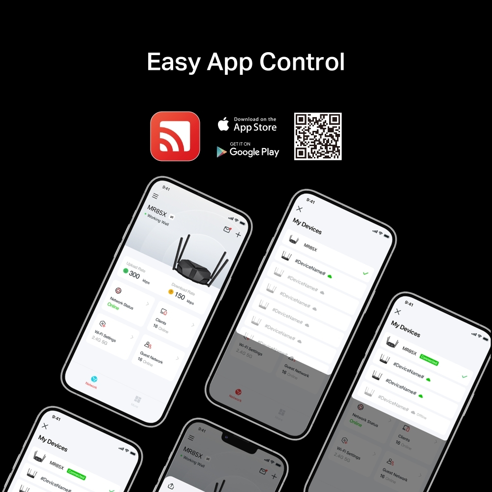 MR85X thể hiện khả năng kết nối đa thiết bị vô song, dễ dàng quản lý mọi nhu cầu trực tuyến của bạn. Từ giải trí gia đình đến các hội nghị chuyên nghiệp, nó đảm bảo trải nghiệm mạng liền mạch cho mọi người, mở ra kỷ nguyên mới của cuộc sống thông minh và làm việc từ xa hiệu quả.