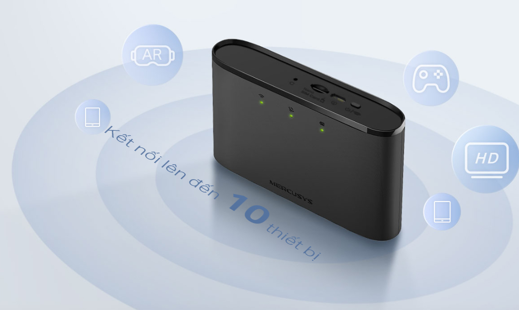 MT110 hỗ trợ đến 10 kết nối 4G/3G đồng thời và dễ dàng cho máy tính bảng, laptop, điện thoại di động và các thiết bị khác.