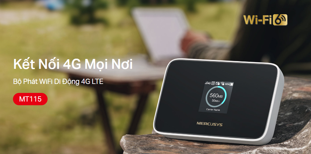 Mercusys MT115 là bộ phát WiFi 4G LTE di động (Mobile Wi-Fi), cho phép người dùng chia sẻ Internet từ SIM 4G sang WiFi một cách linh hoạt, không cần đường truyền cố định.