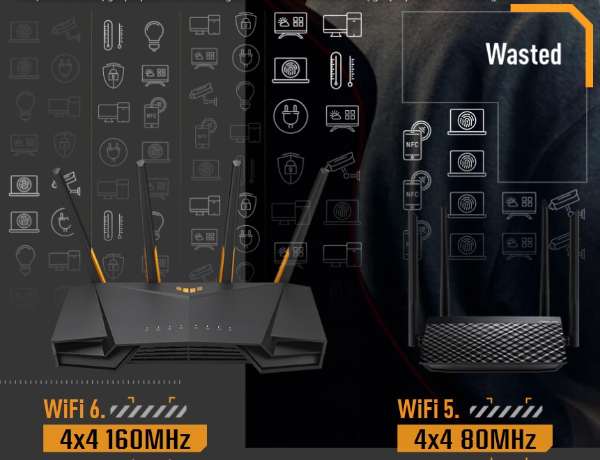 TUF Gaming AX4200 được thiết kế để mang đến cho bạn kết nối không dây và có dây nhanh và ổn định trong môi trường dày đặc thiết bị kết nối. Đó là một router mang đến lợi ích cho tất cả các thiết bị của bạn, từ laptop, smartphone và máy console cho đến tất cả các thiết bị IoT trong nhà bạn