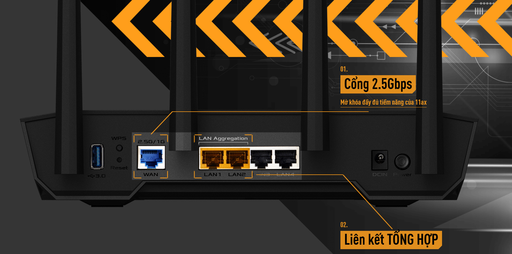 - Tốc độ có dây Multi-Gigabit đích thực - Kết nối 2 mạng LAN Gigabit tổng hợp, cổng có dây 2,5Gbps và WiFi 6.