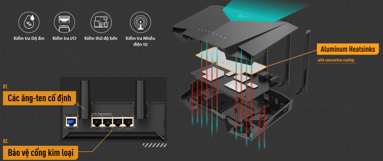 TUF Gaming AX4200 được thiết kế để bền bỉ và đã trải qua các bài kiểm tra xác nhận để đảm bảo hoạt động đáng tin cậy và ổn định.