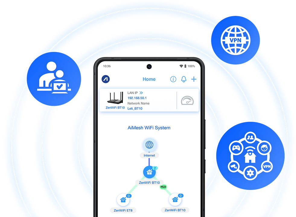 AiMesh không chỉ đơn thuần là mở rộng vùng phủ sóng hay chuyển vùng liền mạch. Công nghệ này hoạt động với tất cả các bộ router ASUS tương thích, mang đến khả năng quản lý dễ dàng, bảo mật nâng cao và các tính năng nhà thông minh trên toàn bộ mạng của bạn.