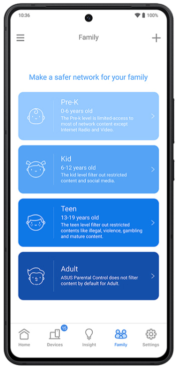 Hồ sơ được thiết lập sẵn sẽ tự động lọc nội dung không phù hợp và thiết lập lịch trình thời gian sử dụng màn hình, giúp bạn dễ dàng áp dụng cài đặt dựa trên độ tuổi của con.