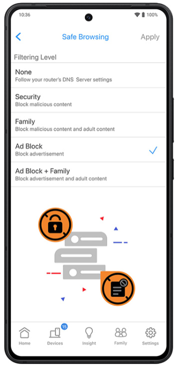 Tùy chỉnh bảo vệ cho từng người dùng hoặc một nhóm thiết bị bằng bộ lọc an toàn để bảo mật các hoạt động trực tuyến.