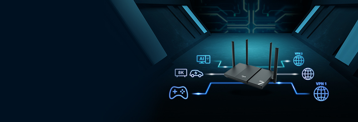 Thưởng thức duyệt web an toàn, quyền riêng tư dữ liệu, quyền truy cập từ xa – khả năng VPN toàn diện của ASUS xử lý tất cả. RT-BE50 hỗ trợ các giao thức VPN đa năng, bao gồm WireGguard® tiên tiến cho tốc độ nhanh như chớp và hiệu năng tối ưu.