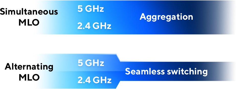 Công nghệ Multi-Link Operation (MLO) cho phép kết nối không bị gián đoạn bằng cách kết hợp và chuyển đổi thông minh giữa các băng tần 2,4 GHz và 5 GHz. ASUS RT-BE50 được thiết kế cho tương lai của tất cả các thiết bị WiFi 7, bất kể chế độ MLO nào chúng sử dụng*.
