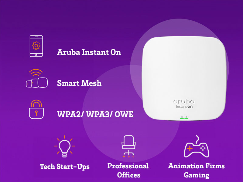 - Tính năng nổi bật: Hỗ trợ Aruba Smart Mesh, VLAN, mạng khách, chuyển vùng (roaming).