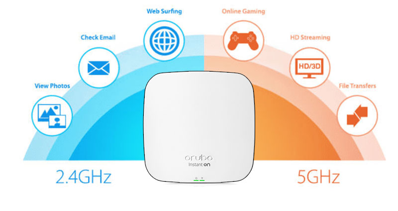 Thuộc dòng Wifi Dual Band, Aruba Instant On AP15 (R2X06A) hỗ trợ việc phát wifi đồng thời trên 2 băng tần 2.4GHz/5GHz, đảm bảo phạm vi phủ sóng rộng, tính tương thích cao cùng đường truyền tốc độ cao không bị ảnh hưởng bởi nhiễu sóng. Công nghệ MU-MIMO 4x4:4 trên tần số 5GHz cùng MIMO 2x2 trên tần số 2.4GHz cho phép truyền tải đa luồng dữ liệu tới nhiều thiết bị cùng lúc, giảm thiểu tối đa tình trạng trễ mạng, giải phóng hiệu năng của thiết bị.