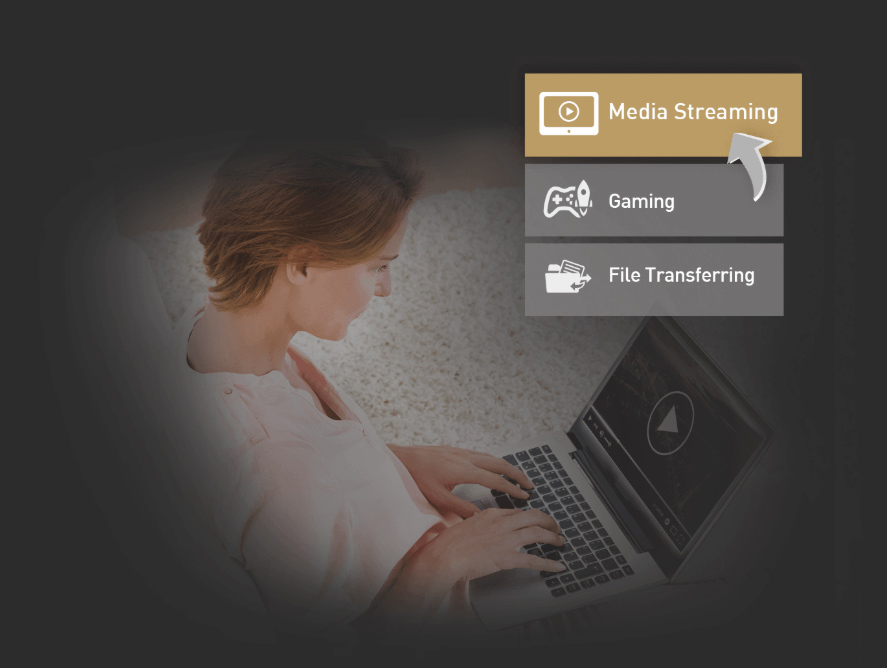 ASUS QoS đảm bảo băng tần vào và ra trên cả kết nối có dây và không dây để bạn có thể chọn chơi game trực tuyến và phát HD là ưu tiên cao nhất, khắc phục được mọi vấn đề về độ trễ.