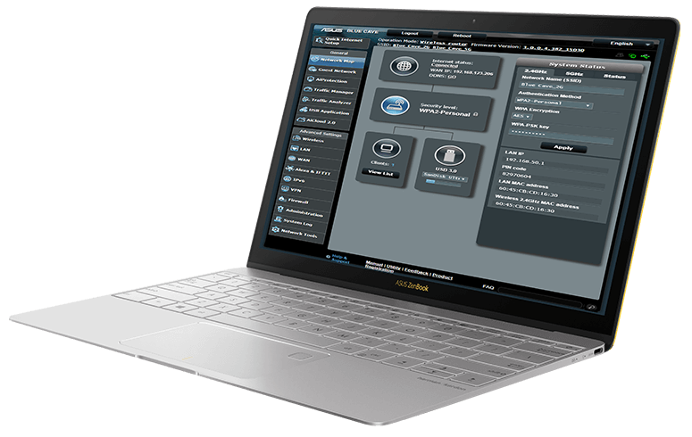 Giao diện máy tính dựa trên nền web ASUSWRT trực quan giúp bạn kiểm soát tất cả các tính năng và cài đặt của Blue Cave. Sẽ rất tuyệt khi bạn muốn khám phá tất cả khả năng của Blue Cave.