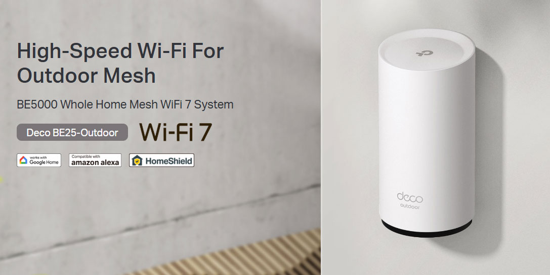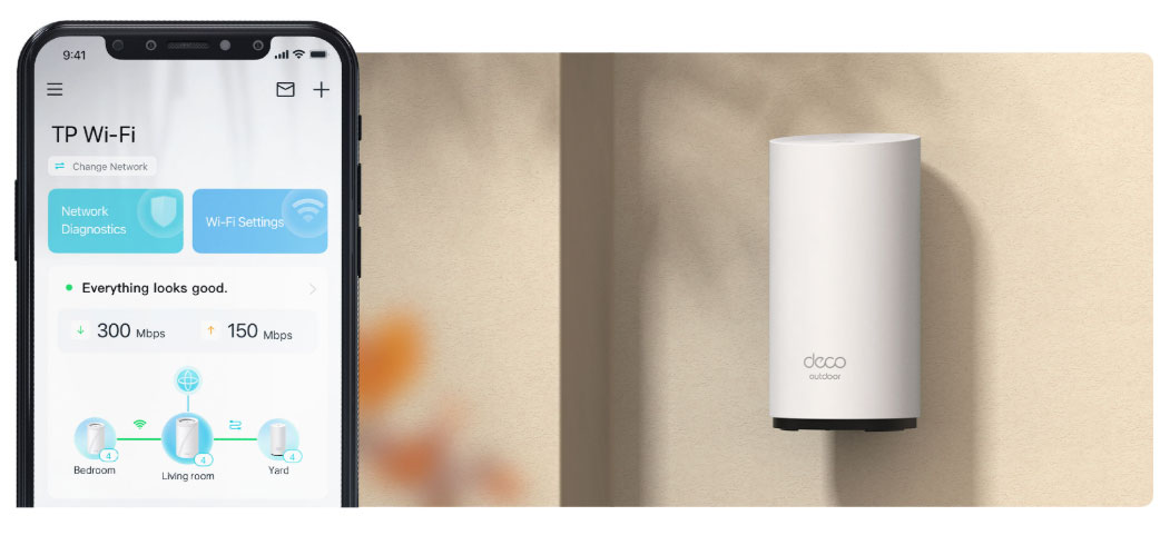 Deco BE25-Outdoor có vỏ chống chịu thời tiết và nhiệt độ hoạt động ổn định, cho phép tín hiệu Wi-Fi mạnh ở bên ngoài. Lắp đặt linh hoạt và nguồn điện giúp sử dụng ngoài trời dễ dàng hơn.