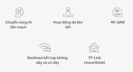 - Chuyển vùng liền mạch do AI điều khiển – Tạo thành mạng thống nhất với tính năng Chuyển vùng AI tích hợp, tạo ra giải pháp Wi-Fi lý tưởng cho ngôi nhà của bạn.