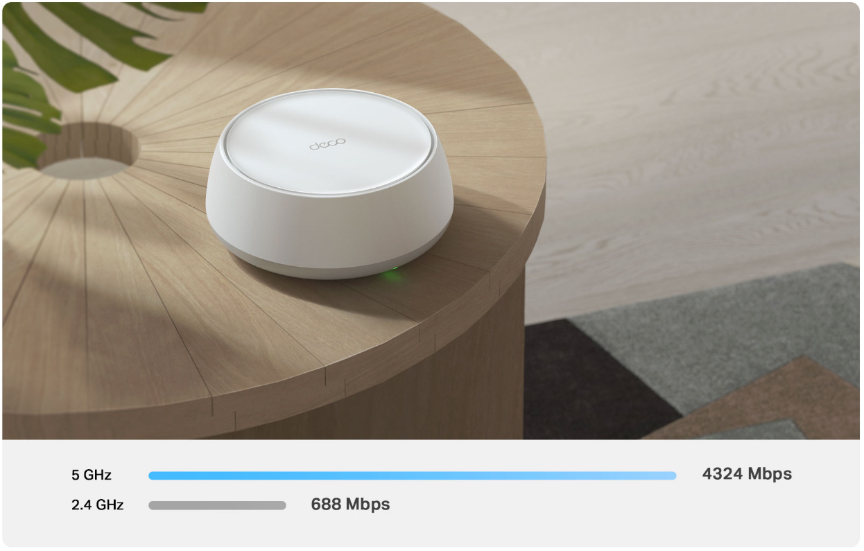 Công nghệ 4K-QAM mới nhất tăng tốc độ Wi-Fi lên đến 5 Gbps† - lý tưởng cho các tác vụ đòi hỏi băng thông cao như chơi game trên đám mây và video 8K. Các gia đình sẽ tận hưởng được trải nghiệm phát trực tiếp hấp dẫn với video mượt mà và âm thanh rõ ràng, không bị gián đoạn.