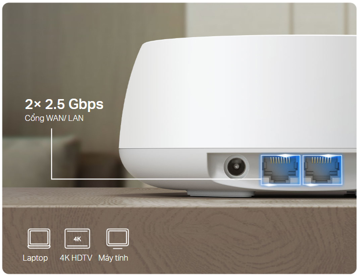 §Tốc độ internet 2,5 Gbps yêu cầu các gói dịch vụ và thiết bị tương thích. Tất cả các cổng WAN/LAN sẽ hoạt động như cổng WAN hoặc LAN. Chỉ một cổng có thể đóng vai trò là cổng WAN tại một thời điểm.