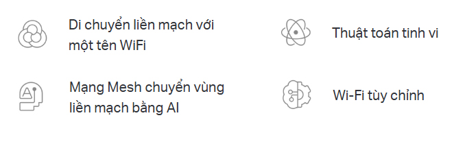 - Chuyển vùng liền mạch bằng AI – Tạo thành một mạng thống nhất với AI-Roaming tích hợp sẵn, tạo ra giải pháp WiFi lý tưởng cho ngôi nhà của bạn.