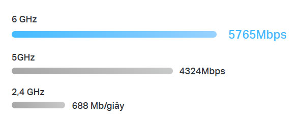 Wi-Fi 7 giải phóng toàn bộ tiềm năng của 4K-QAM và băng tần 6 GHz với các kênh lên đến 320 MHz, mang lại tốc độ Wi-Fi chưa từng có lên đến 11 Gbps . Băng tần 6 GHz mới cung cấp các kênh không bị tắc nghẽn băng thông đặc biệt .