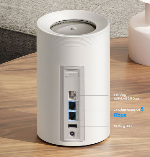 - Kết nối có dây 5 Gbps – 2× cổng 5 Gbps và 1× 2.5 Gbps đảm bảo tính linh hoạt tối đa và tăng thông lượng.§