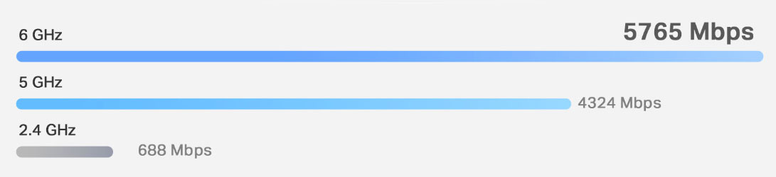 Việc tích hợp băng tần 6 GHz giúp giảm tắc nghẽn và đảm bảo kết nối tốc độ cao ổn định ngay cả khi nhiều thiết bị sử dụng cùng một lúc.