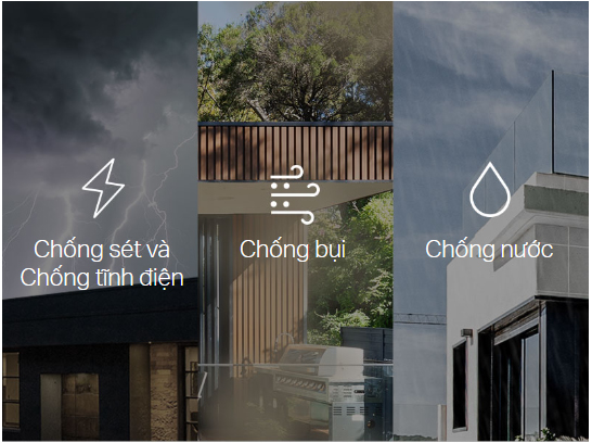 *Bảo vệ chống sét và phóng điện tĩnh có thể đạt được thông qua việc thiết lập sản phẩm đúng cách, tiếp đất và che chắn cáp. Tham khảo hướng dẫn sử dụng và tư vấn chuyên gia IT để hỗ trợ thiết lập sản phẩm này.