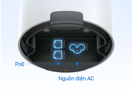 Deco BM65-Outdoor hỗ trợ cả PoE (Power over Ethernet) và nguồn điện AC, cho phép vận hành trong các môi trường ngoài trời phức tạp. Hai cổng 2.5 Gbps hỗ trợ PoE giúp người dùng tiết kiệm chi phí dây cáp và bộ chuyển đổi nguồn điện.