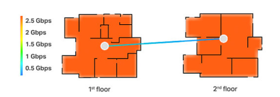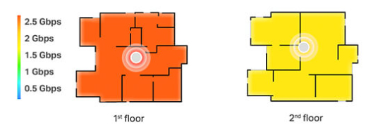 Hầu hết ngôi nhà được phủ sóng bởi kết nối tốc độ cao 2,5 Gbps . Cạnh ngôi nhà cũng duy trì ở mức khoảng 2 Gbps . Điều này tạo nên WiFi lưới Multi-Gigabit thực sự cho toàn bộ ngôi nhà. ***