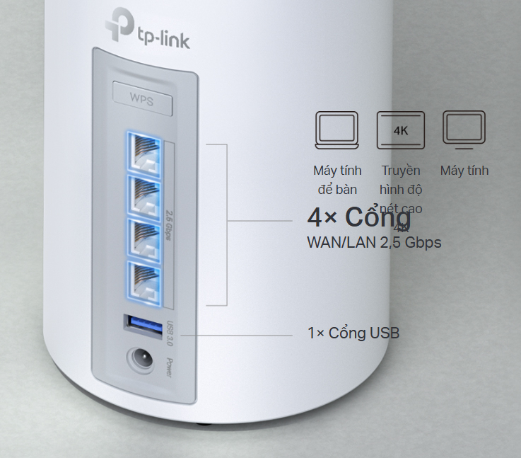 | Cổng Ethernet | • 4× 2,5 Gbps *Mỗi đơn vị Deco hỗ trợ cảm biến tự động WAN/LAN |