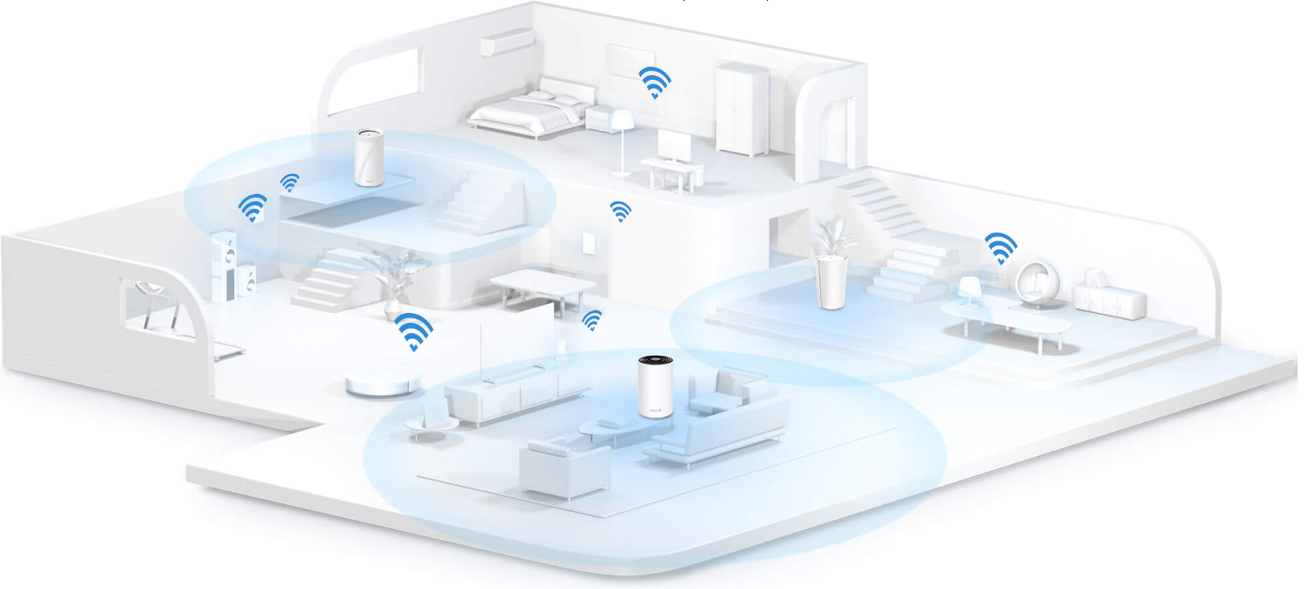 Phạm vi bảo hiểm toàn bộ ngôi nhà rộng hơn Công nghệ TP-Link Mesh |