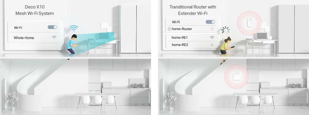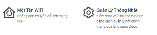 - Một mạng hợp nhất: Nhiều thiết bị Deco tạo thành một mạng cho toàn bộ ngôi nhà và tự động chọn kết nối tốt nhất khi bạn di chuyển quanh nhà.