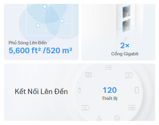 - Vùng phủ sóng liền mạch được tăng cường: Đạt được vùng phủ sóng liền mạch và tín hiệu mạnh mẽ cho toàn bộ ngôi nhà do Wi-Fi 6 cung cấp.‡