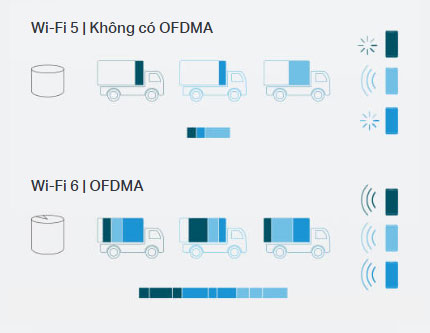 Công nghệ OFDMA cho phép sử dụng băng thông WiFi hiệu quả hơn, mang lại tốc độ nhanh hơn, giảm độ trễ và cải thiện dung lượng mạng.
