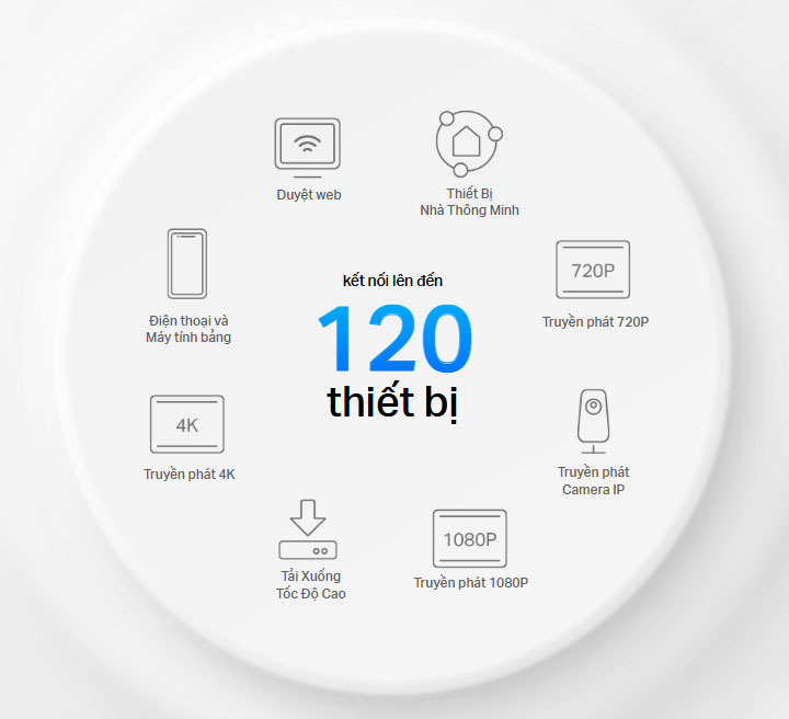 ‡Máy khách cần hỗ trợ 802.11k/v/r và có thể yêu cầu thiết lập bổ sung. Hiệu suất có thể khác nhau tùy thuộc vào thiết bị của khách hàng.