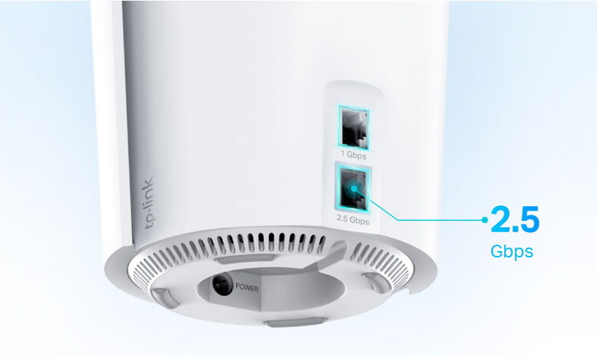 Một cổng 2.5 Gbps và một cổng gigabit cho phép bạn tận dụng tối đa tốc độ băng thông rộng của mình. Cắm PC, TV thông minh hoặc máy chơi game console của bạn vào các cổng để có kết nối có dây cực nhanh.