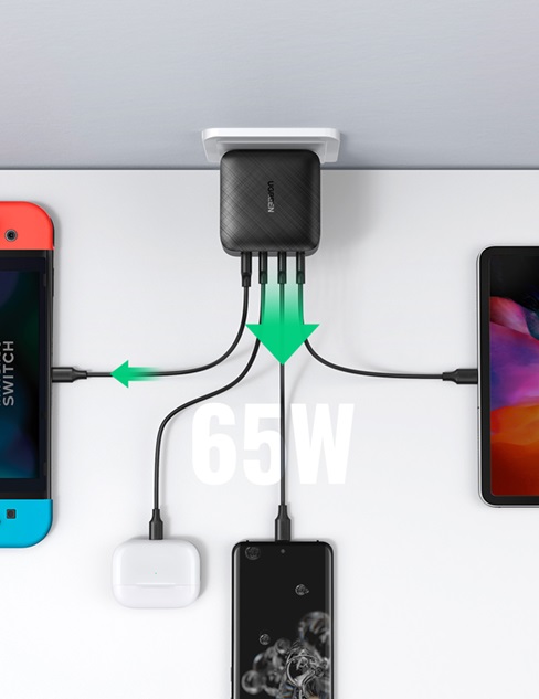 Tự hào với cấu hình thấp, bộ sạc 3GaN cung cấp khả năng sạc nhanh khổng lồ 65 watt. Hơn nữa, nó có thể sạc cùng lúc tối đa 4 thiết bị.