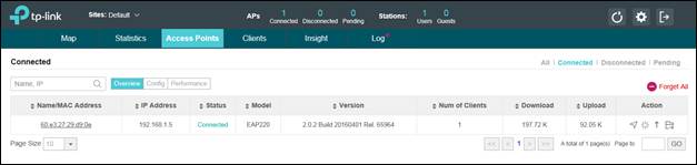 Bước 3. Chạy Controller EAP. EAP sẽ xuất hiện trong danh sách “đang chờ xử lý” của controller EAP / Omada, có nghĩa là bạn có thể sử dụng controller EAP / Omada để áp dụng và quản lý EAP này ngay bây giờ được hiển thị như bên dưới.