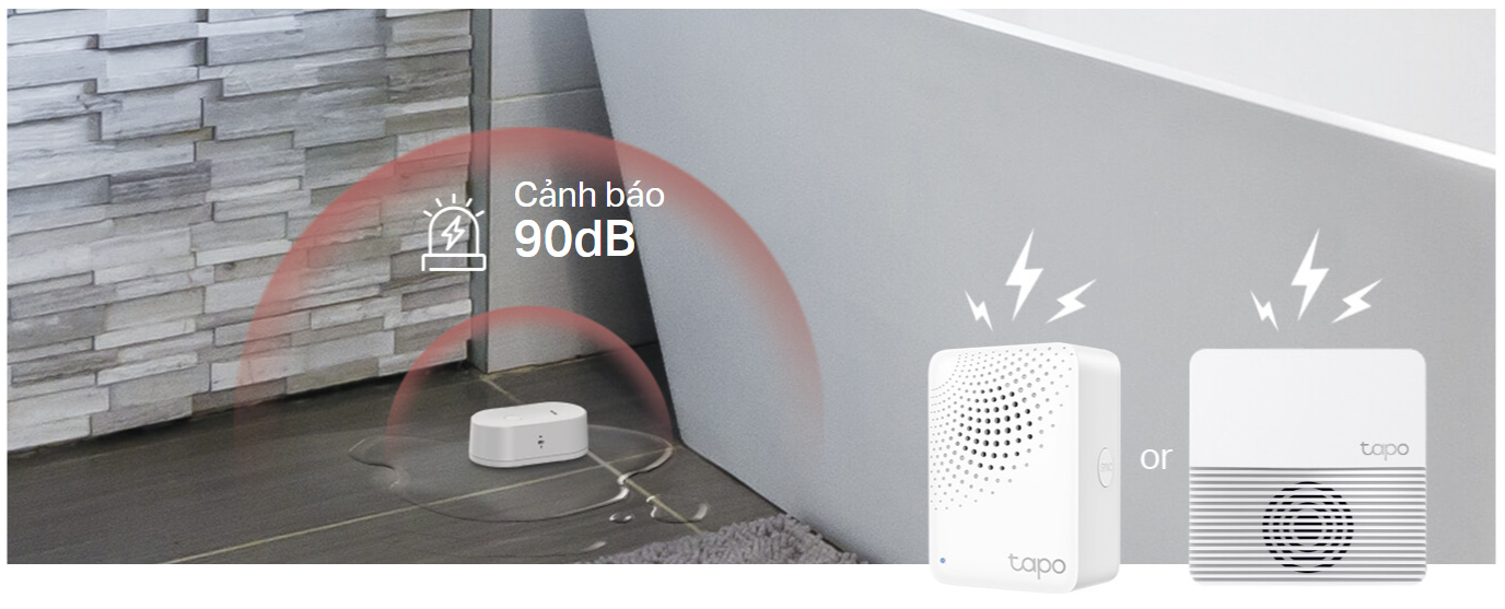 Ngay khi phát hiện nước, Tapo T300 sẽ cảnh báo bạn tức thì bằng âm báo 90 dB. Đặc biệt, nó còn có thể kích hoạt báo động từ Hub (kết nối với cảm biến) để mở rộng phạm vi cảnh báo âm thanh ra toàn bộ ngôi nhà. Điều này giúp bạn có thể can thiệp ngay lập tức, ngăn chặn những thiệt hại nghiêm trọng hơn do nước gây ra.