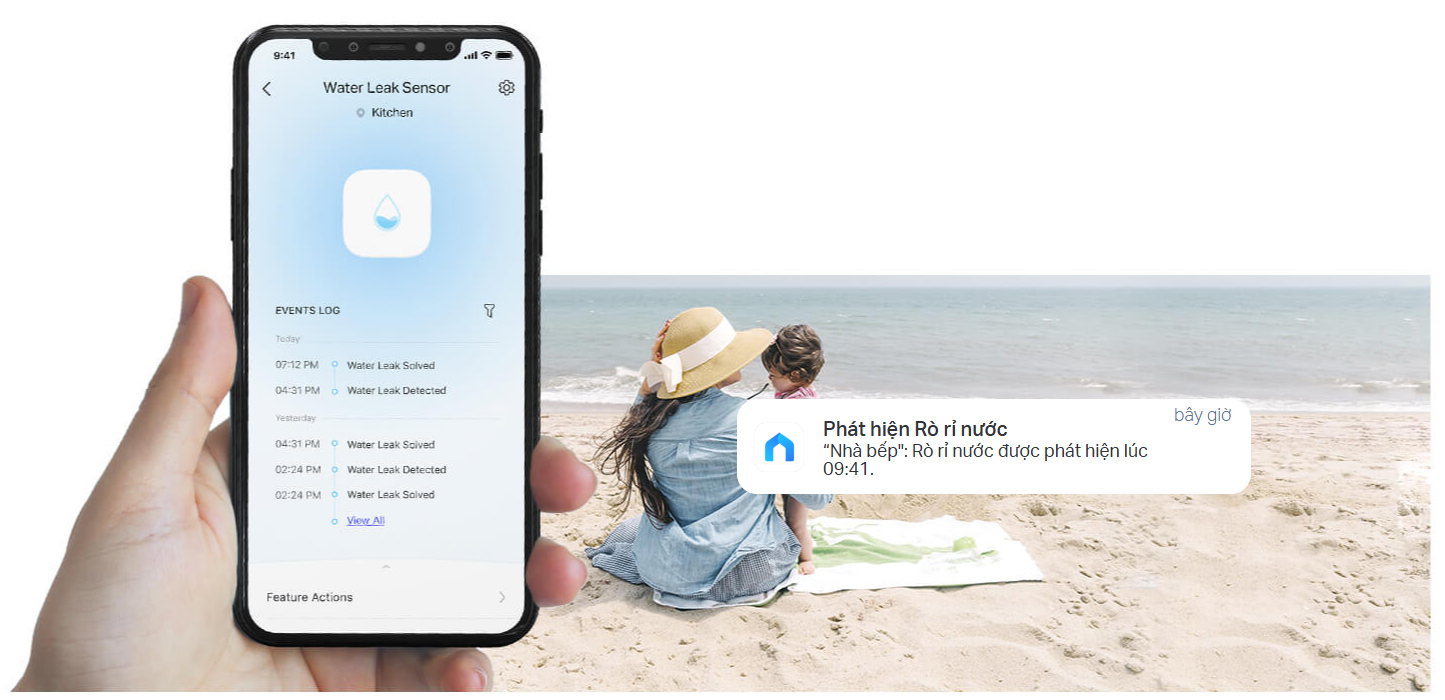 Nhận thông báo tức thì qua ứng dụng khi xảy ra rò rỉ hoặc pin yếu. Nhận biết ngay cả khi bạn không ở nhà.