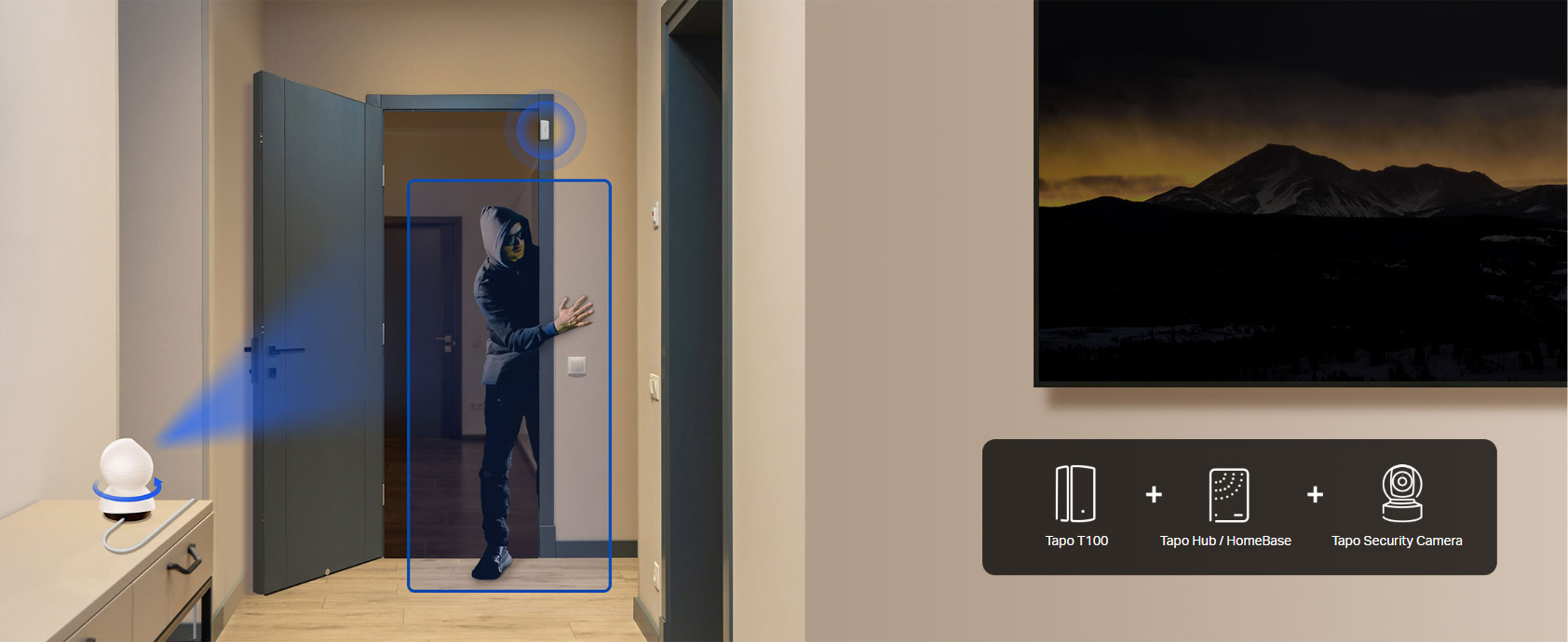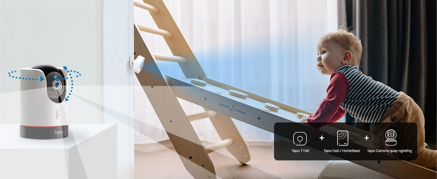 Ngay khi cửa hoặc cửa sổ mở, camera Tapo quay nghiêng / lắc có thể quay về phía kẻ xâm nhập và phát ra báo động.