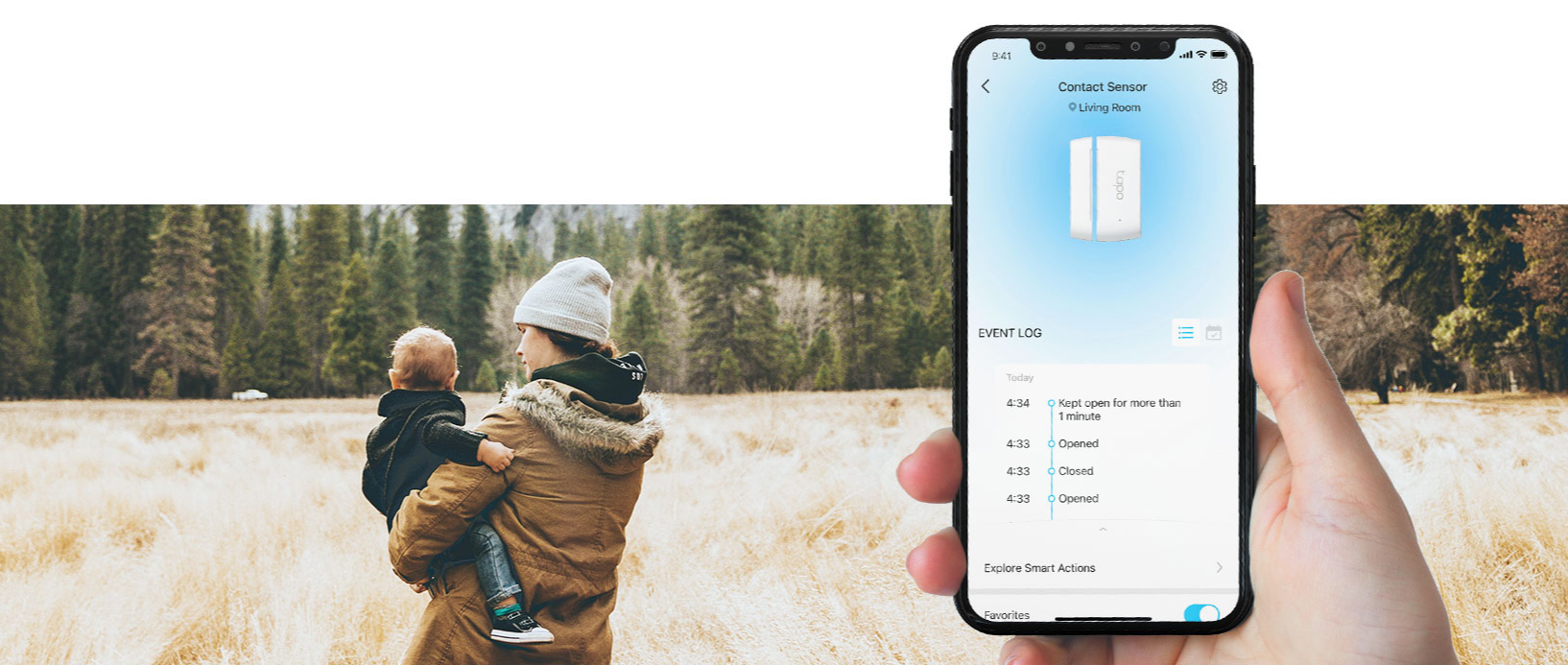 Không cần băn khoăn liệu bạn đã đóng hết cửa sổ sau khi rời nhà. Kiểm tra cửa ra vào và cửa sổ trong nháy mắt với ứng dụng Tapo.