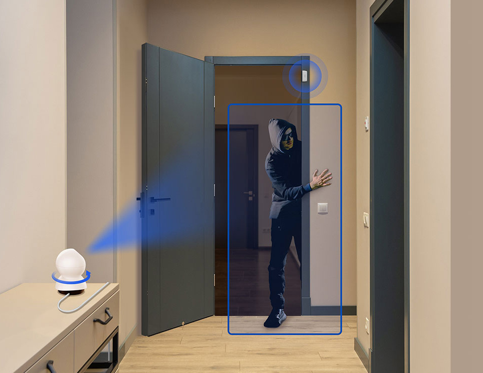 Ngay khi một cánh cửa hoặc cửa sổ mở ra, Camera an ninh Tapo của bạn có thể quay về phía kẻ xâm nhập và phát ra còi báo động.