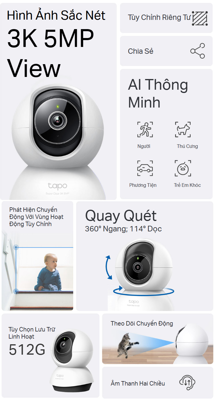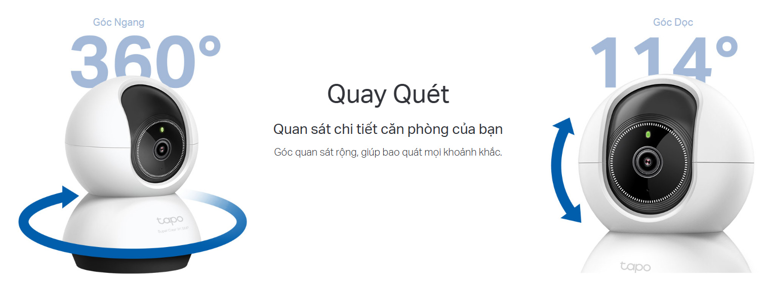 - Góc Quan Sát Rộng: Quay quét 360º ngang và 114º dọc, giúp bao phủ nhiều khu vực hơn.
