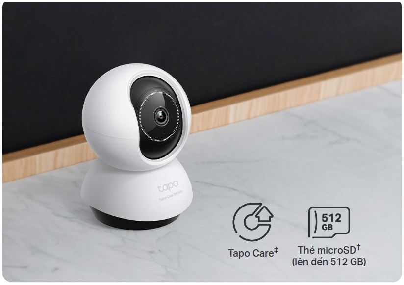 Lưu video vào thẻ microSD†(lên đến 512 GB) hoặc sử dụng dịch vụ lưu trữ đám mây Tapo Care‡.