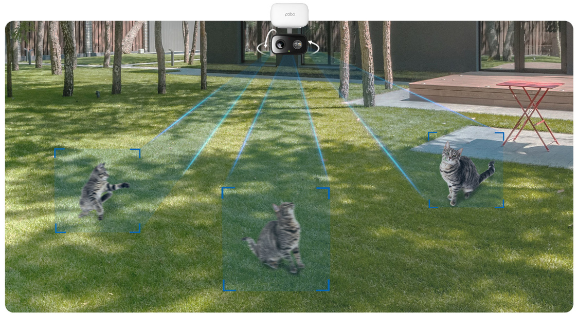 Khi phát hiện chuyển động, camera sẽ tự động theo dõi và giữ mục tiêu (người hoặc thú cưng) trong khung hình.